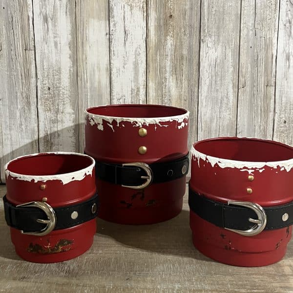 This set of Santa planters is the perfect way to add a touch of Christmas to your home or office. Great for displaying small trees and greenery.  They’re made of metal, so they’ll last for years to come.