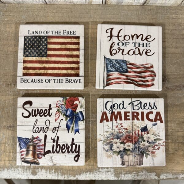 Add a touch of heritage to your home with our Americana Slate Coaster Set. Featuring four distinct, vintage-inspired designs, these coasters celebrate the spirit of the Red, White, and Blue. Each coaster is crafted from durable slate with a weathered “white-washed wood” aesthetic, printed with high-quality graphics that include the American flag, the Liberty Bell, and rustic floral arrangements.