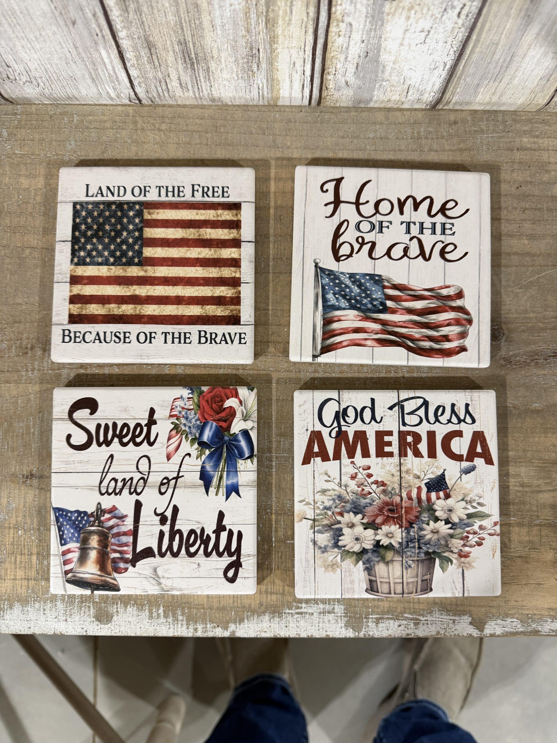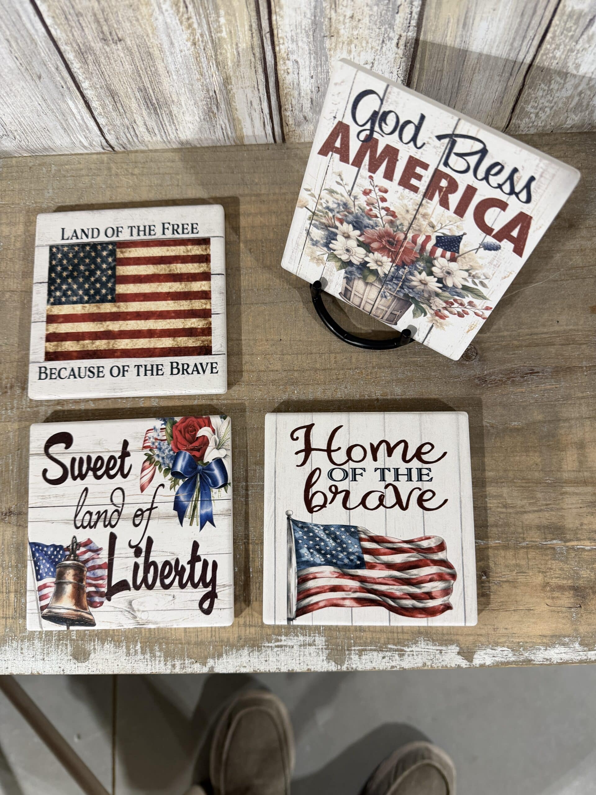 Styling Tip: These coasters pair beautifully with primitive or farmhouse decor. They are the perfect functional accent for Memorial Day gatherings, Fourth of July celebrations, or everyday use for those who love their country.