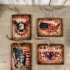 Each piece is crafted on sturdy 3″ x 4″ MDF and features a warm, aged parchment finish. The rich, tea-stained edges provide a beautiful framed effect that makes the colors of the flags and florals truly pop.