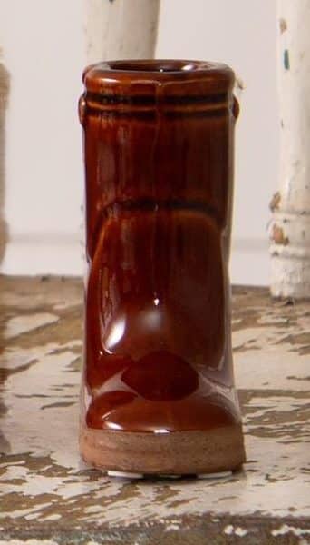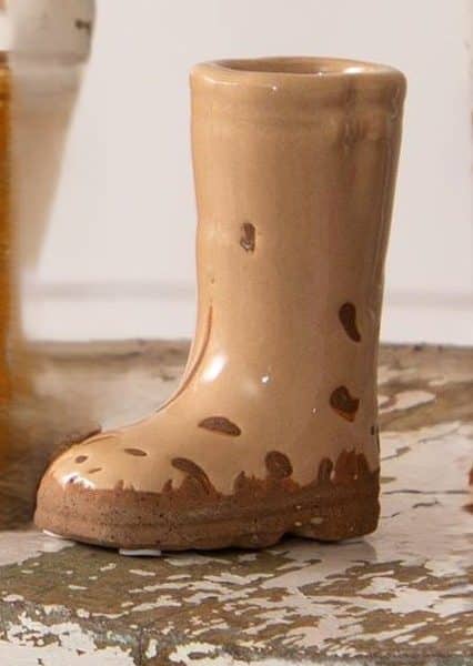 What a charming, whimsical way to bring some extra color and flair to your space. Set of four mini ceramic boot vases in a palette of earthy tones. Each vase features a glossy glazed finish and subtle distressing to create a charming standalone piece or part of a curated display. Great for holding small florals, greenery, or simply as a decorative accent. These ceramic boots bring warmth and character to any setting.