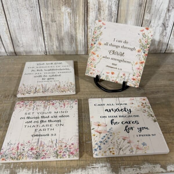 Whether you are looking for a thoughtful housewarming gift, a Mother’s Day surprise, or a “just because” gesture for a friend in need of encouragement, these coasters serve as a beautiful and functional ministry tool for any living space.