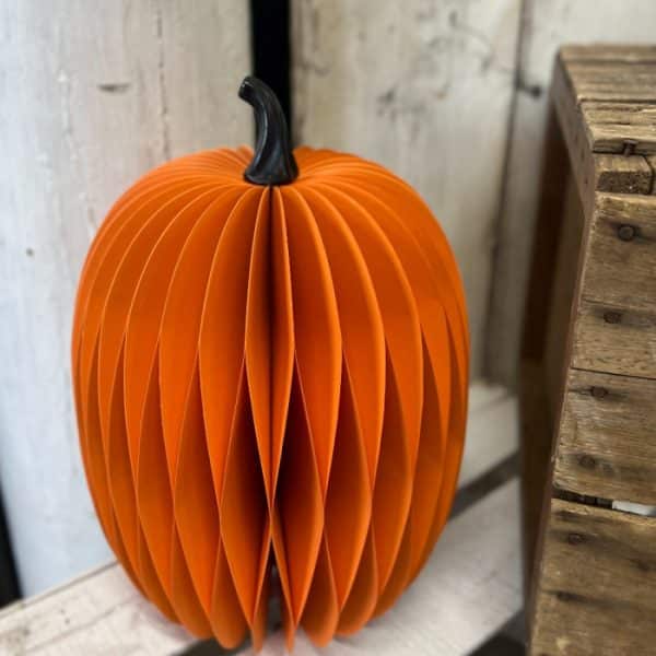 Decorate for Fall with these amazing Orange Paper Pumpkins! The orange pumpkins are made of heavy cardstock, the stem is a heavy plastic, and the pumpkins are easy to open and close with the built in magnets. They will close flat for easy storage.