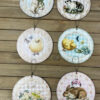 In this set of two primitive stitcheries you will receive one Welcome stitchery that is in a wood black destressed frame and one family & friends stitchery which is in a wood green destressed frame. Each frame measures approximately 5.5” x 5.5” and can either be hung on a wall or stand on a table, shelf or tiered tray.