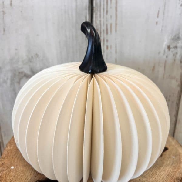 Decorate for Fall with these amazing White Paper Pumpkins! The white pumpkins are made of heavy cardstock, the stem is a heavy plastic, and the pumpkins are easy to open and close with the built in magnets. They will close flat for easy storage.