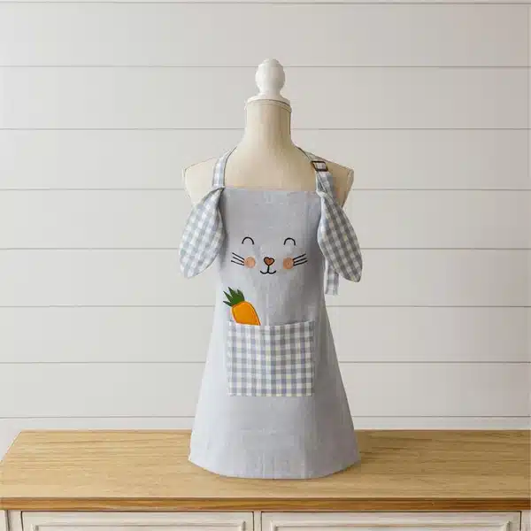 This Sweet Bunny Child’s Apron is a charming and practical addition to any young chef’s kitchen, specifically designed for Easter and spring-themed activities.