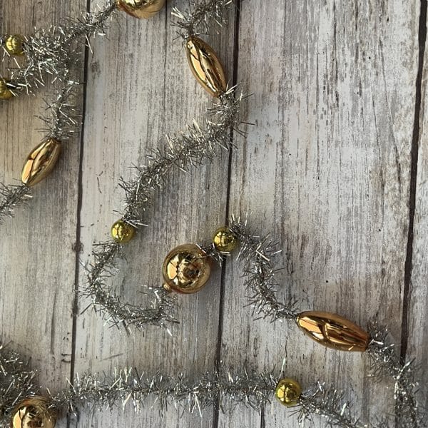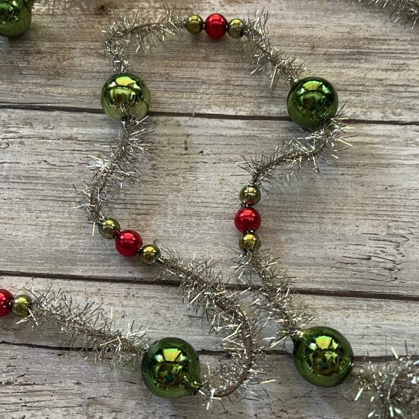 Add sparkle and shine to your Christmas decor with this vintage inspired tinsel and Bead Garland. Beads are made of plastic and painted to look vintage. Garland is available in 3 different colors ( green, gold, and red). Garlands are sold separately, please make a choice of color below.