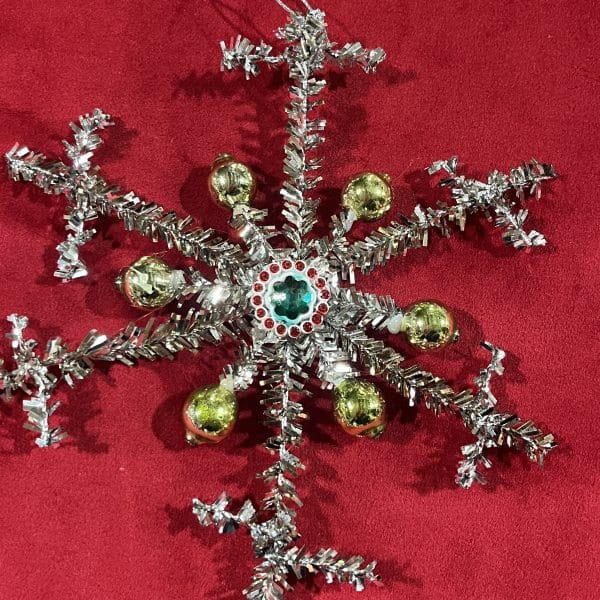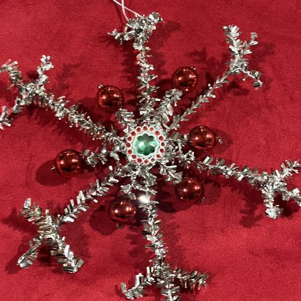 Be the first to review “Tinsel Snowflake Ornaments W/Glass Beads Red, Green, Gold” Cancel reply