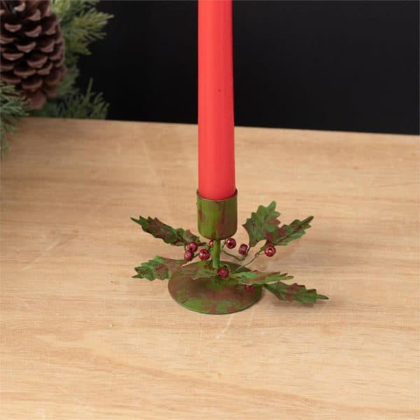 Add a touch of vintage elegance to your holiday decor this year with this set of two metal holly candle holders. These candle holders features a beautiful ornate design and will complement any decor in your home.