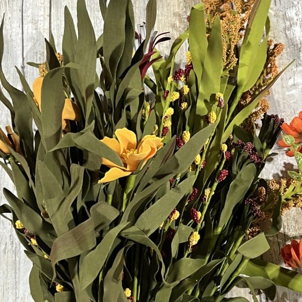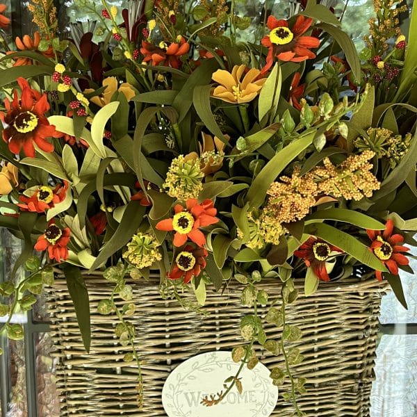 If you have purchased my Welcome Basket with the Spring/Summer flowers kit I have put together this Fall floral update kit for the basket! In this kit you will receive two wild flower mix bushes and three orange daisy sprays. I have posted a video on my Facebook page of how I refilled the welcome basket with this update kit. This kit is just the Fall flowers and does not include the basket.
