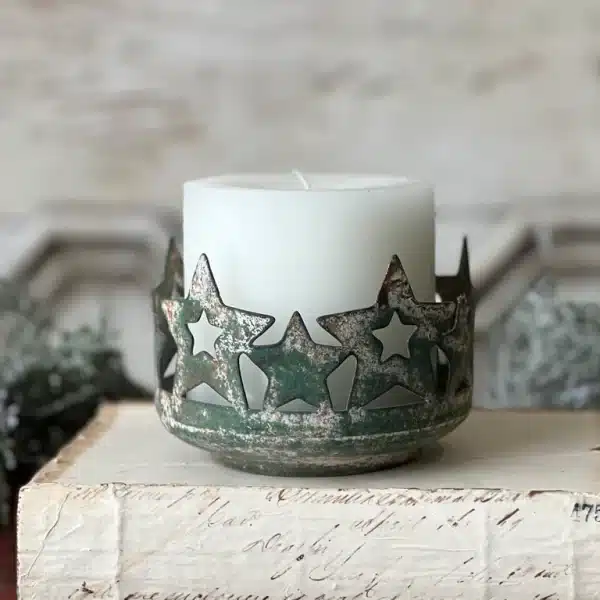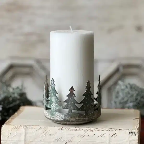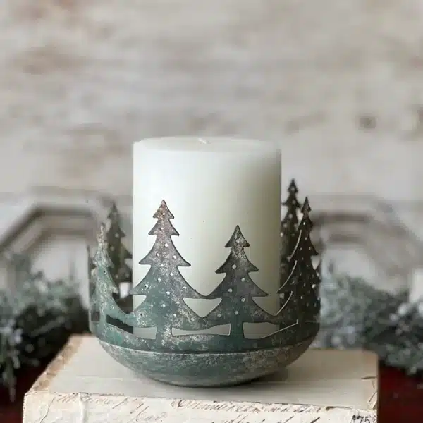 This trio of small holders feature lovely silhouettes with holiday imagery that add a certain whimsy and wonder to displays. Their pretty distressed finishing makes them even more attractive.