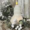 In this Lantern set you will receive a wooden lantern with a distressed finish, a bead hanger, and four legs for freestanding display, a 2.25 x 4 rustic white timer pillar, and a 1.5” simple cedar mini ring. The timer on the pillar will activate after 2 “AA” batteries (not included) are inserted and turned on. Timer is on for 6 hours and off for 18 hours.