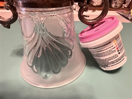 While the sugar bowl is setting place the lid onto the head and see where the two pieces are touching. Add Gorilla clear grip adhesive to the inside of the lid, let it set for about 3 minutes then place it onto the head. Set aside for about 20 minutes.